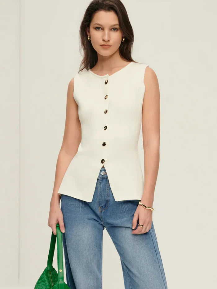 O Colete Feminino Bege é uma peça versátil e elegante que transforma qualquer look. Com caimento ajustado e botões estilo tartaruga, é perfeito para composições modernas, casuais ou formais, com ou sem sobreposição.